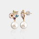 Broquel con Perlas Blancas y Piedra Peridoto en Oro Blanco 18k. Broche Mariposa. 1.3 cm de alto y 1.1 cm de ancho.
