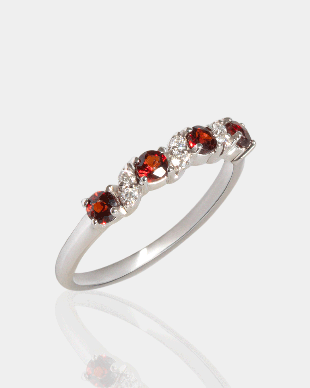 Anillo de Oro con Diamantes de Laboratorio y Granate.