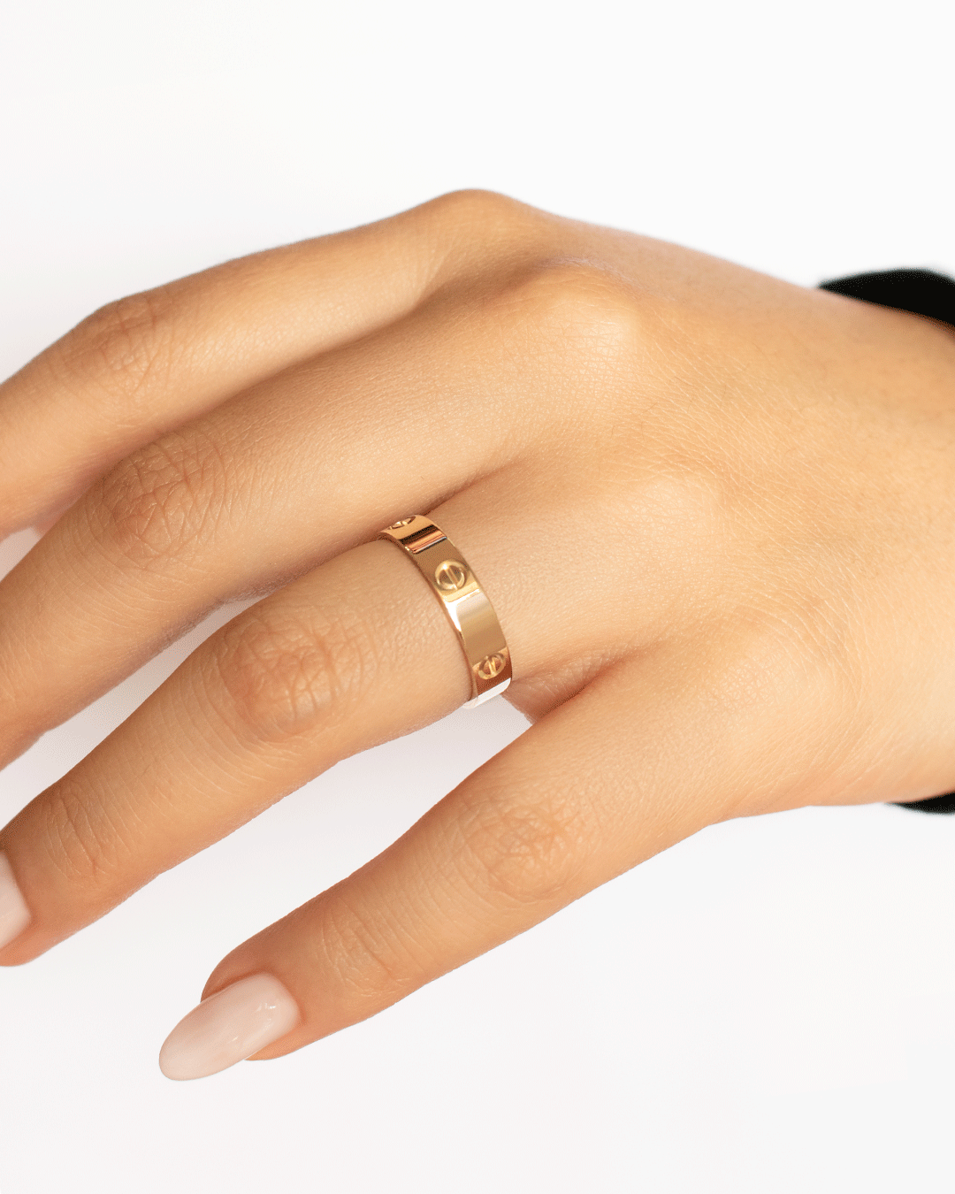 Argolla de Matrimonio con Grabado de Tornillos en Oro Amarillo 14k