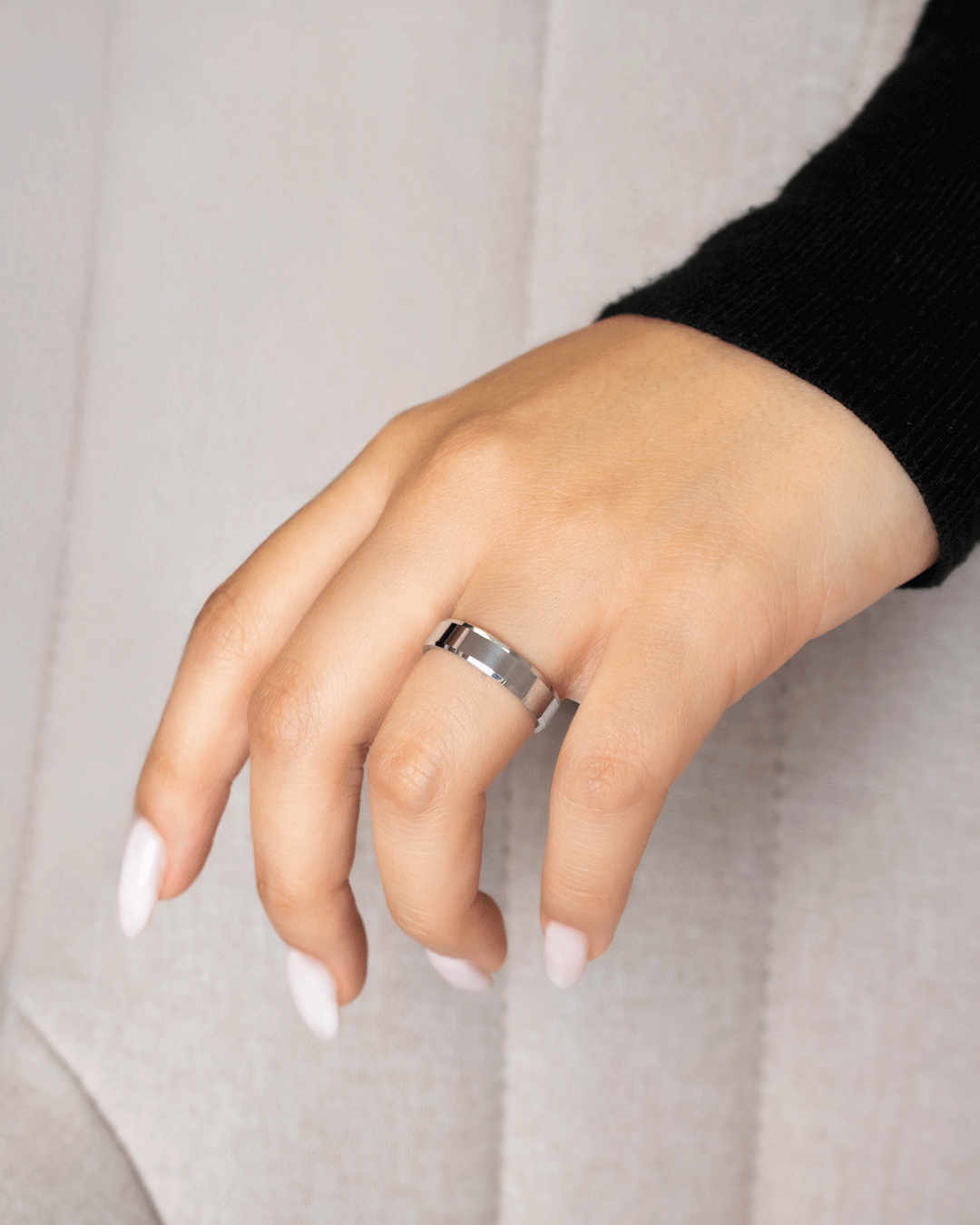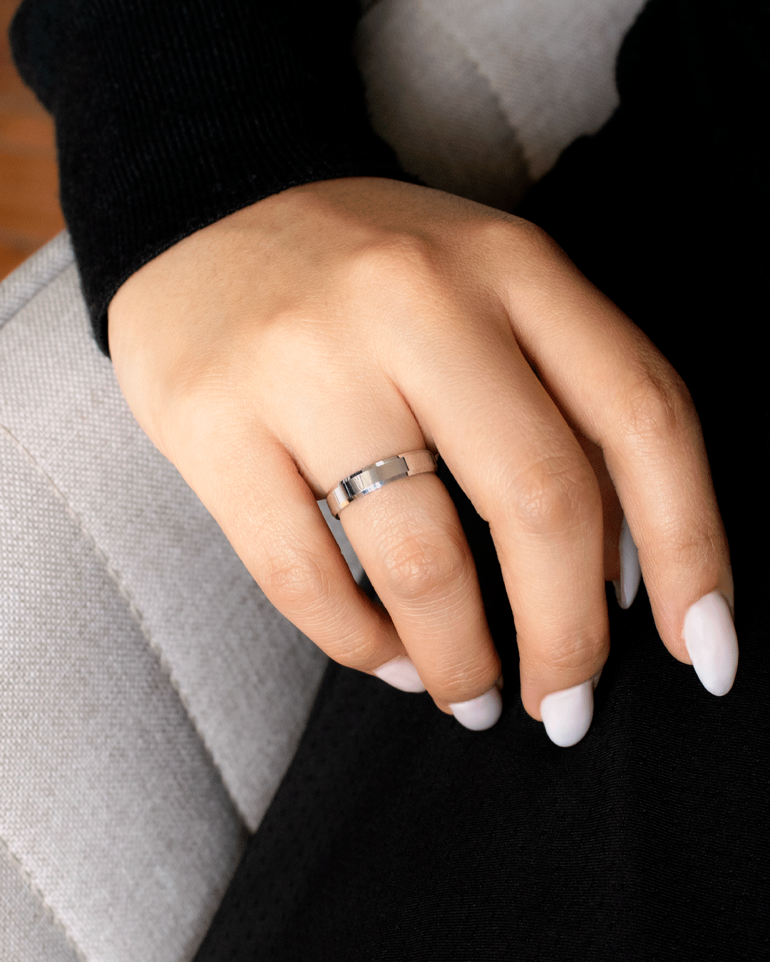Argolla de Matrimonio Confort con Bisel de Oro Blanco 14k